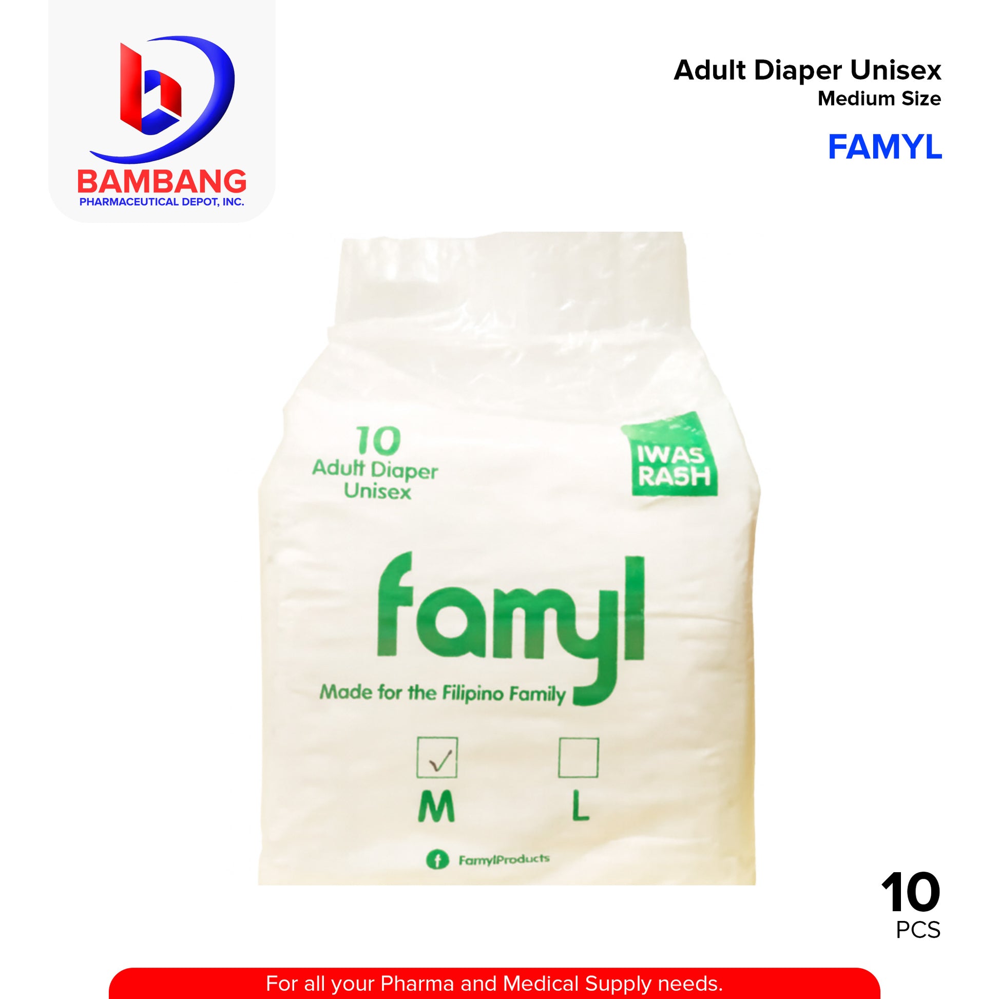 FAMYL Adult Diaper Medium Pieces 10's
