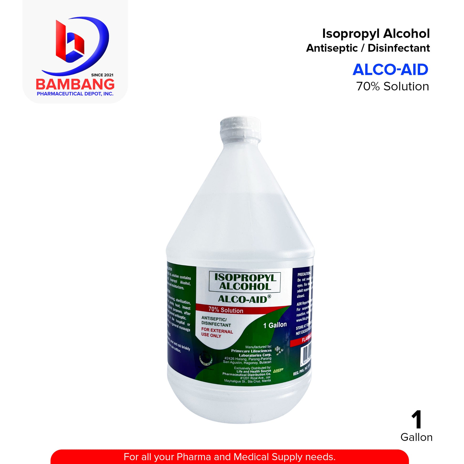 ALCO-AID Isopropyl Alcohol 70% is a hospital-grade antiseptic and surface disinfectant formulated to effectively reduce bacteria and help prevent infection. Suitable for hand hygiene and rapid surface sanitation in clinics, pharmacies, offices, and homes.
