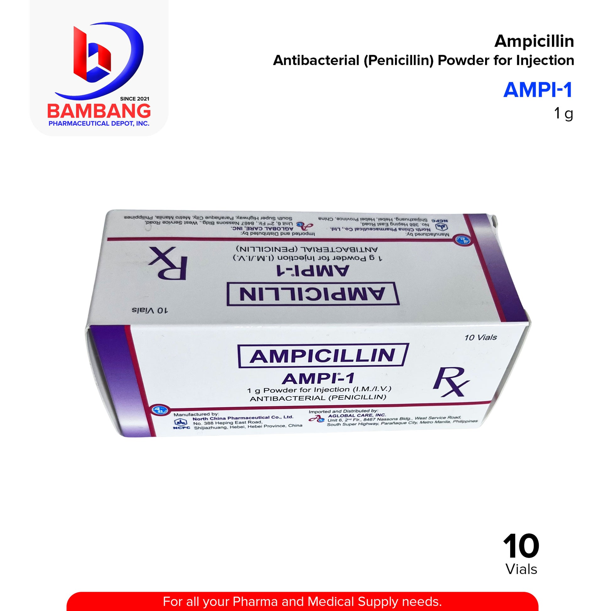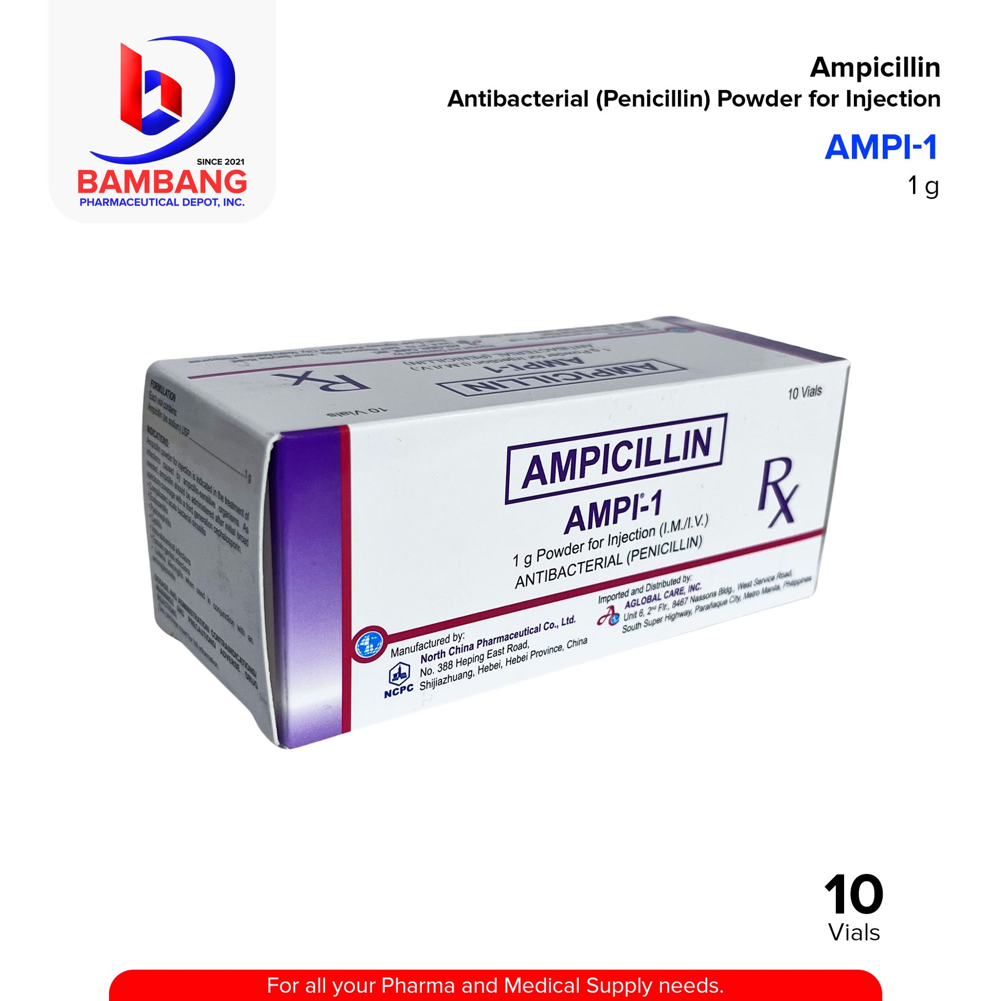 AMPI-1 Ampicillin Antibacterial 1g Powder for Injection (IM/IV) Penicillin Vials 10's