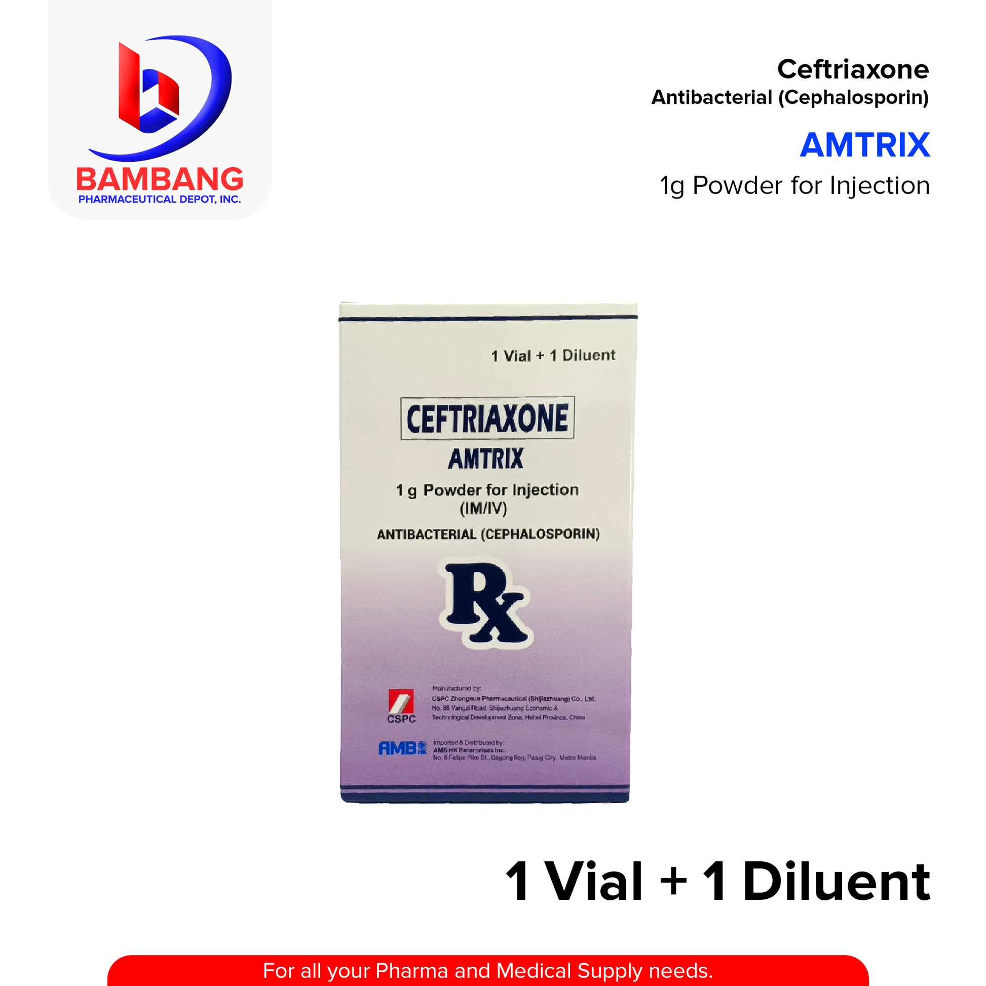 AMTRIX Ceftriaxone Antibacterial (Cephalosporin) 1g 1 Vial + 1 Diluent