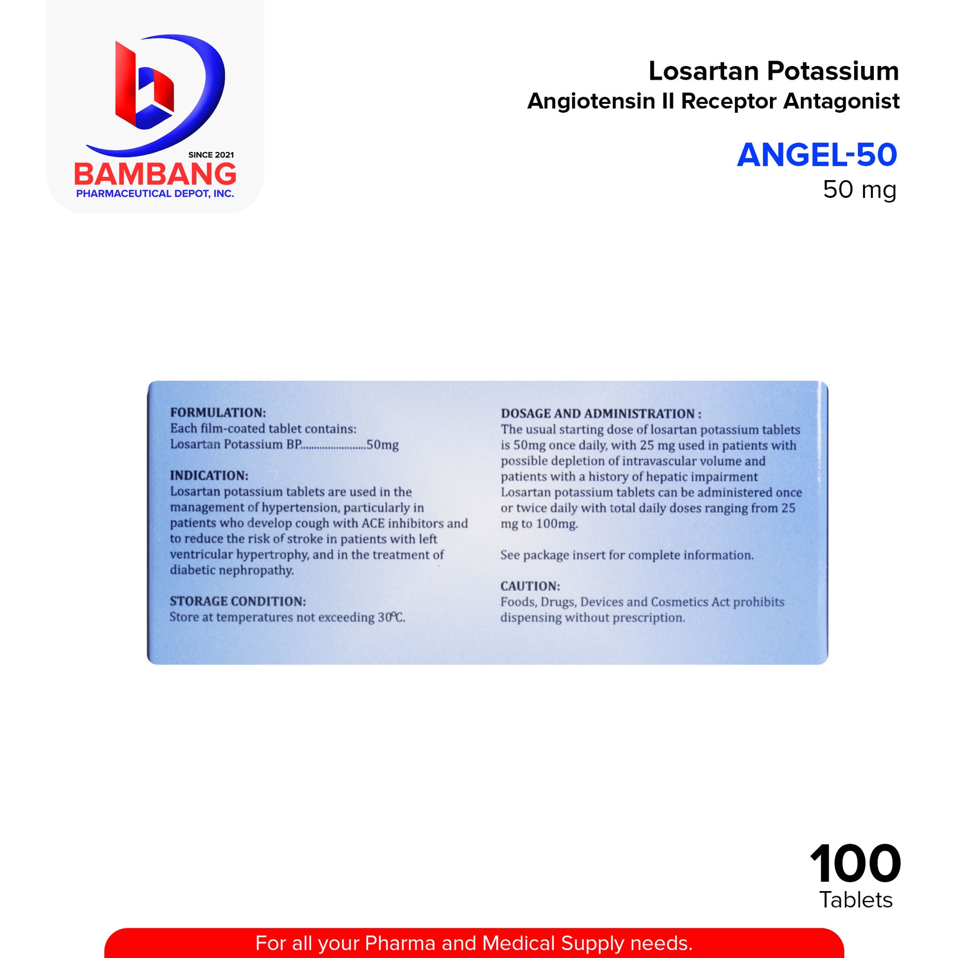 ANGEL 50 Losartan Potassium Angiostensin II Receptor Antagonist Tablet 100's