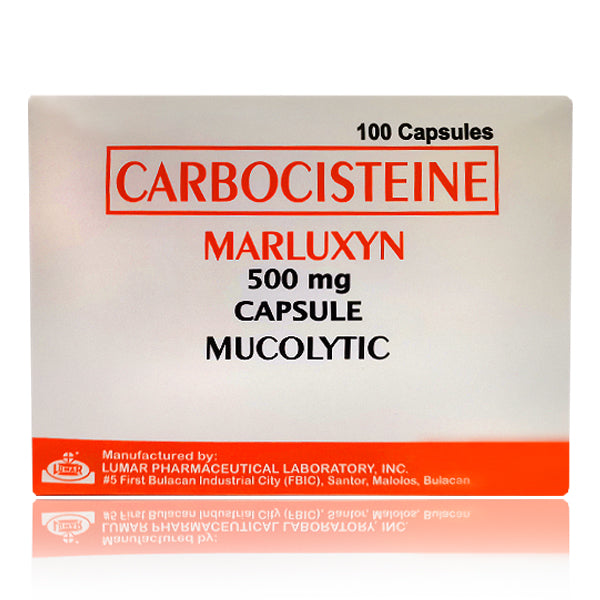Marluxyn is a brand of Carbocisteine, a mucolytic agent that works by thinning and loosening mucus in the airways, making it easier to clear from the lungs and respiratory tract. Each 500mg capsule contains Carbocisteine, which helps reduce the viscosity of mucus, improving mucus clearance and relieving symptoms of respiratory conditions involving excessive mucus production. Marluxyn is particularly effective in conditions such as chronic obstructive pulmonary disease (COPD), chronic bronchitis, asthma, and cystic fibrosis.