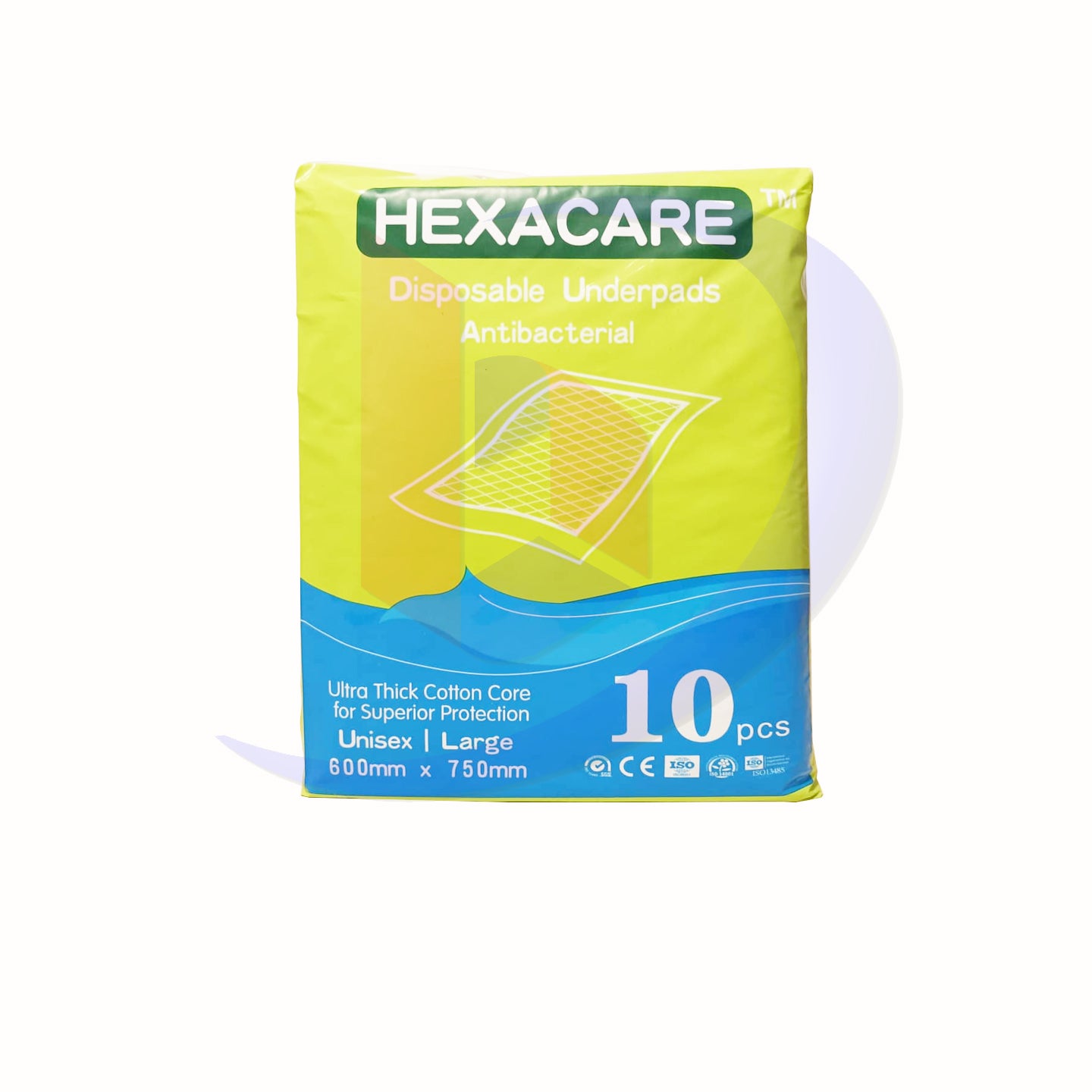 Hexacare Disposable Underpads are ultra-thick cotton pads designed for individuals requiring protection against leakage. These underpads are ideal for use in medical, home care, or healthcare settings. They provide a high level of absorbency and protection for beds, chairs, or other surfaces against urinary incontinence, wound care, or post-surgical use.