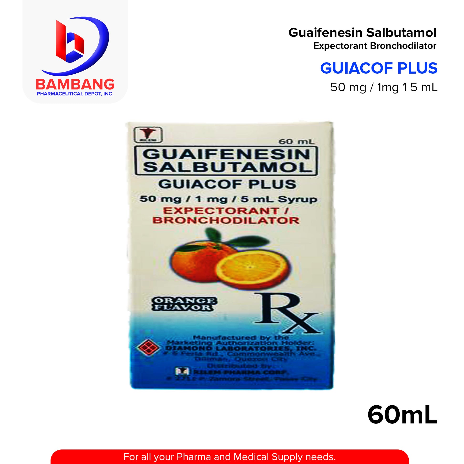GUIACOF PLUS Guaifenesin Salbutamol 50mg/1mg/5ml Syrup 60ml