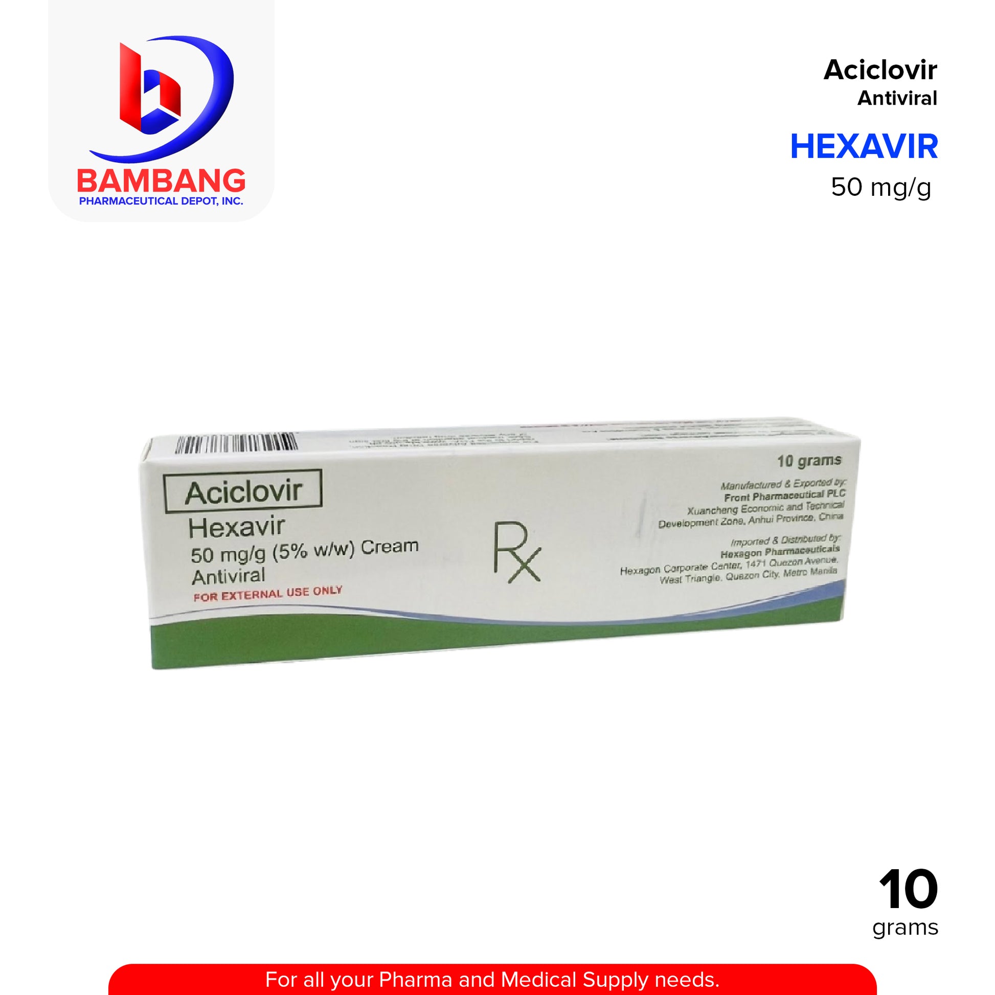 HEXAVIR is a topical antiviral cream containing aciclovir at a concentration of 50 mg per gram (5% w/w). It is supplied in a 10 g tube for external application and is commonly handled in pharmacy and clinical settings under the supervision of a licensed healthcare professional.