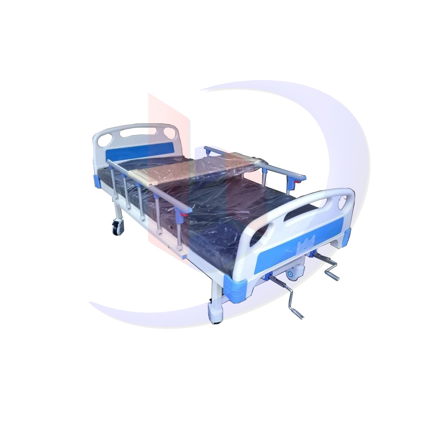 The Hospital Bed 2 Cranks is a manual adjustable bed designed for patient comfort and convenience in healthcare settings, such as hospitals, clinics, and home care environments. This bed features two cranks, which allow the adjustment of the head section and foot section of the bed. The cranks are manually operated, allowing caregivers or patients to easily adjust the bed’s position to suit the patient's needs.