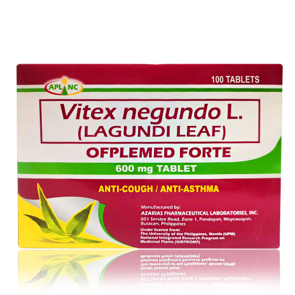 Lagundi Leaf (Ofplemed Forte) 600mg Tablet is a herbal supplement derived from the leaves of Vitex negundo, commonly known as Lagundi. This supplement is often used for its various medicinal properties. Here are the primary indications and uses: