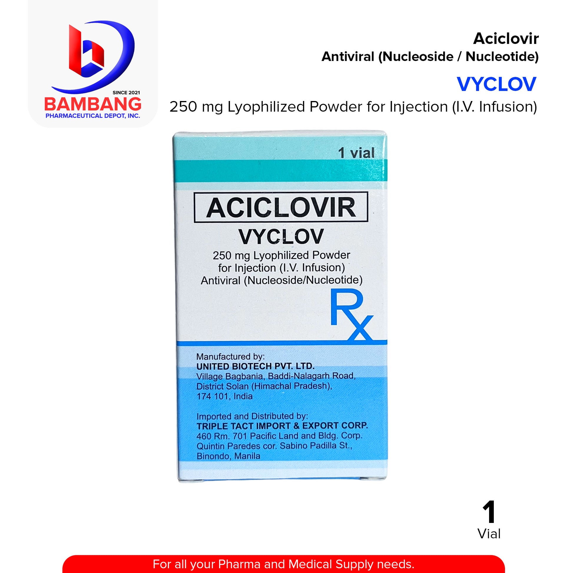 VYCLOV Aciclovir 250 mg Lyophilized Powder for Injection IV Infusion Antiviral Nucleoside / Nucleotide Vial 1's