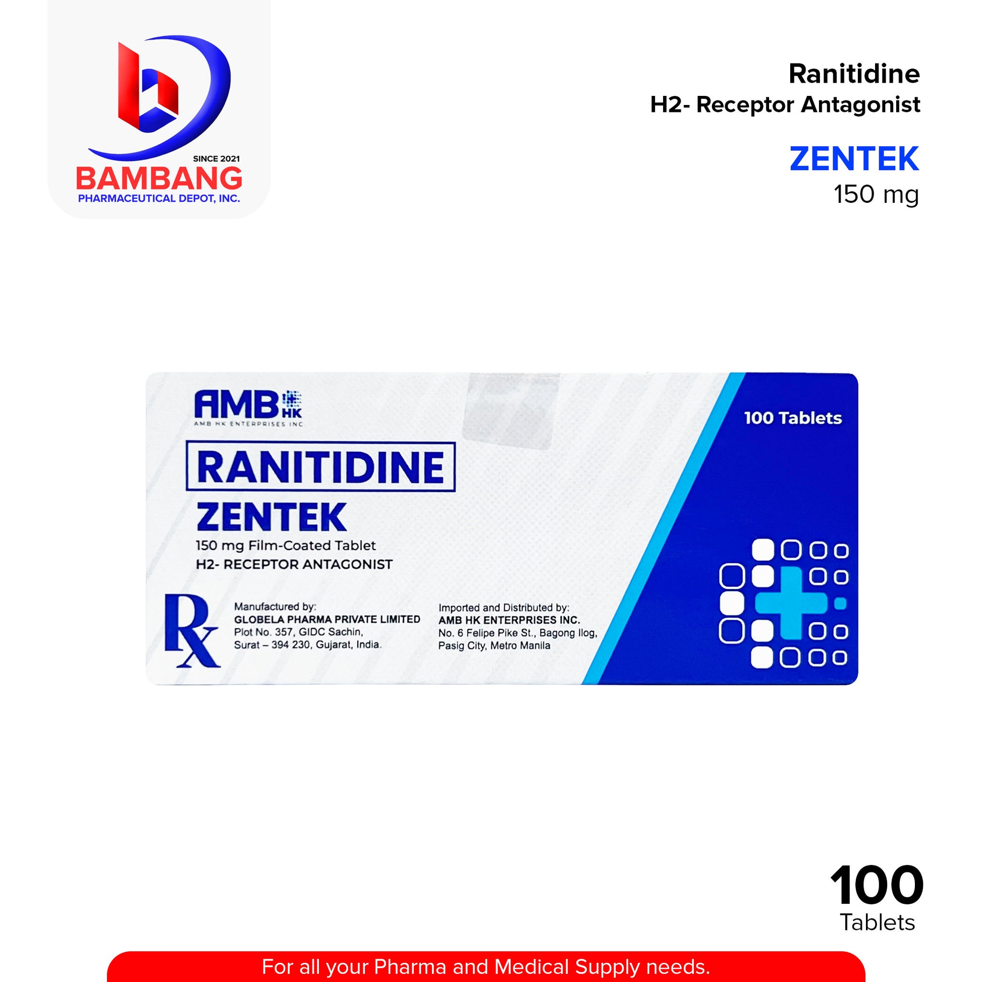 ZENTEK Ranitidine 150 mg Film-Coated Tablet is an H2 receptor antagonist used to help support the relief and prevention of acid-related gastrointestinal conditions such as heartburn, gastric ulcers, and gastroesophageal reflux disease (GERD). It works by reducing the amount of acid produced in the stomach. Use only as directed by a healthcare professional.