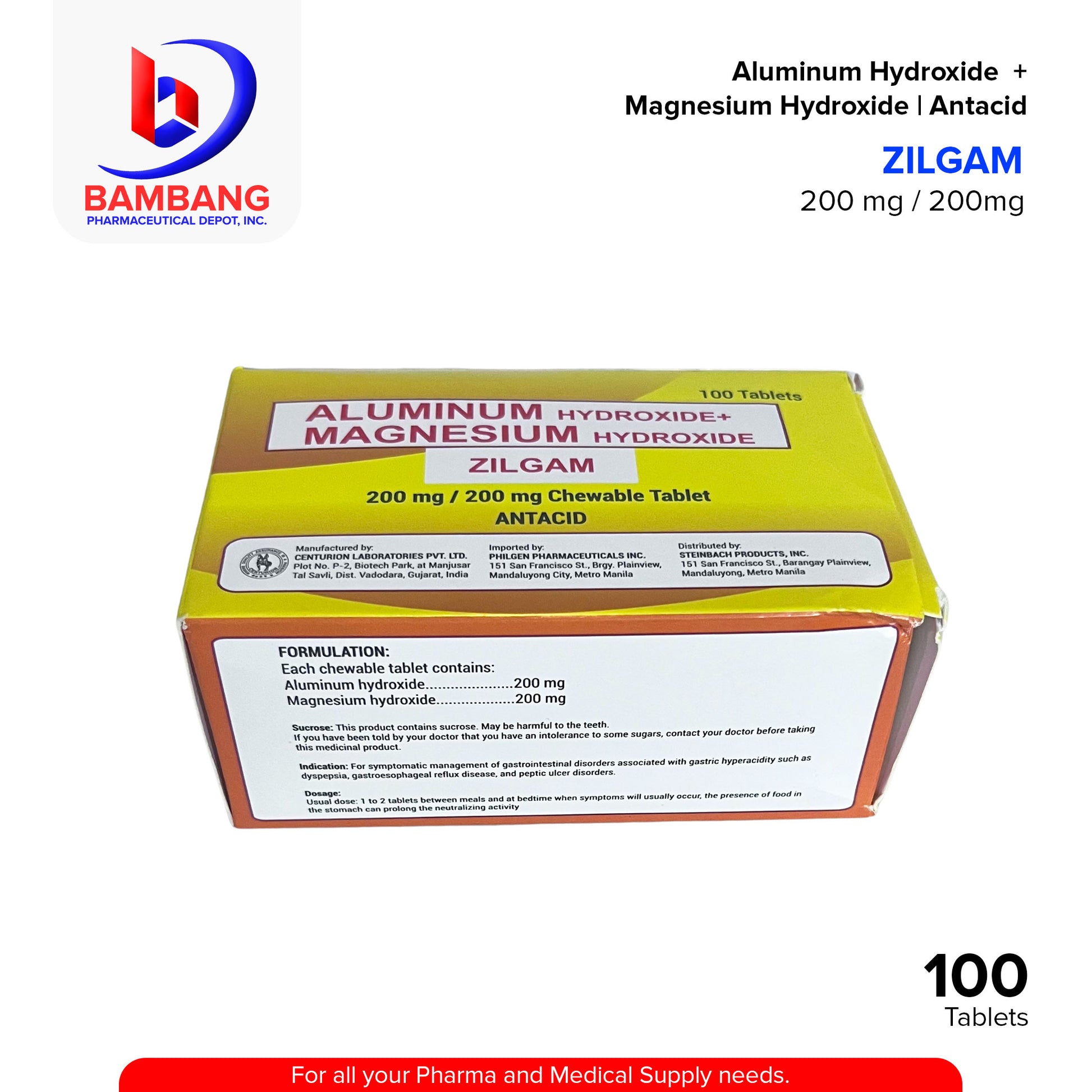 ZILGAM Aluminum Hydroxide + Magnesium Hydroxide Antacid 200 mg / 200 mg Chewable Tablet 100's